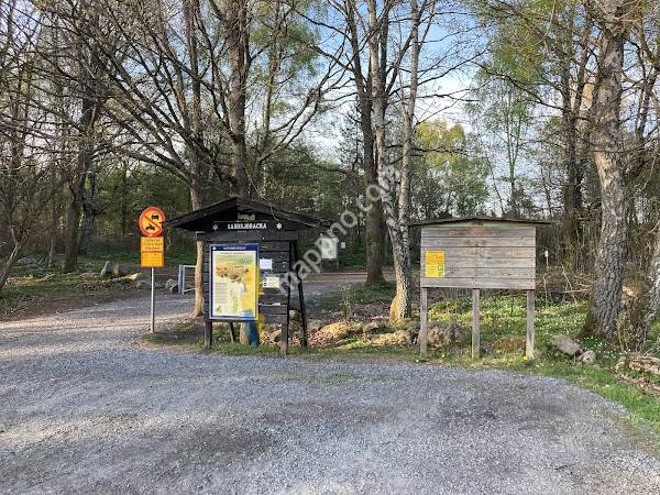Convenient parking next to the trailhead of Oxsjön walking trails. Graveled, relatively flat. The road to get here was pretty narrow though.nGreat information on the boards. Cellphone reception workable. Popular among dog owners.nPeaceful stay and beautiful nature!