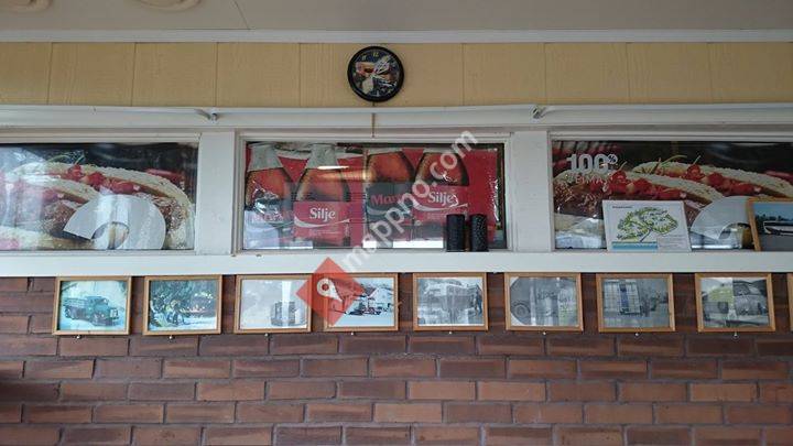 Stanset på bensinstasjonens store område idet bikkja varsla ifra at NÅ var det på tide med en luftetur. Siden stasjonen var lukket på det tidspunktet vi ankom, fikk vi ikke benyttet hverken wc eller kjøpt noe drikke. Kan dessverre ikke si noe om hva de har å tilby eller hvor lenge de har åpent.