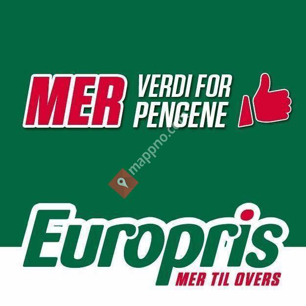 "I vår Europris butikk kan du handle alt fra kosmetikk og personlig pleie, interiør og andre ting til hjemmet, diverse fritids- og husholdningsartikler, klær og sko, utstyr og verktøy, garn, samt mat og utstyr til dyr hund, katt, fugl.Grunnen til at vi kan levere god kvalitet på lik linje med andre norske butikker i ditt nærområde, men til reduserte priser, er p.g.a. at vi kjøper inn store varepartier av gangen.Vi tilpasser vårt vareutvalg etter sesonger og høytider, samtidig som vi kontinuerlig også tilbyr gode kupp på kampanjevarer. Derfor har vi alltid mye nytt og spennende hver gang du kommer innom. Så husk å regelmessig ta turen innom oss for å bli inspirert av sesongens varer eller for å gjøre et kupp! Europris - Mer til overs."Legg til dette kortet på nettstedet ditt;