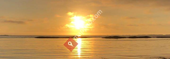 Glamping tent with double bed and wood-burning stove, located in nature, by the sea. In the tent you will also find chairs, outdoor furniture, lights and lamps. Meals are provided upon request and you do not have to do the dishes.