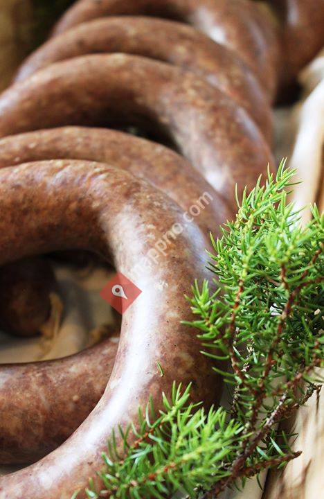 Julepølse med 86 % kjøttinnhald etter garden si eiga tradisjonelle oppskrift.