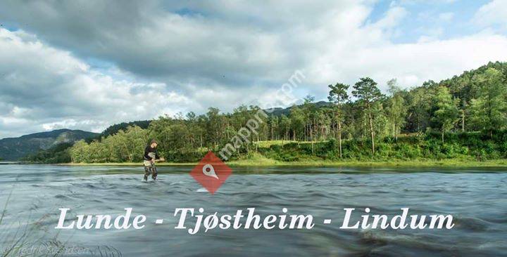 Infoside for valdene Lunde, Tjøstheim og Lindum i Suldalslågen.