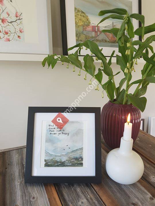 Malingen har jeg holdt på med siden 2003. Akrylmaling tok min tid fram til 2015. Da gikk jeg på akvarellkurs og har siden vært forelsket i papiret og fargene.